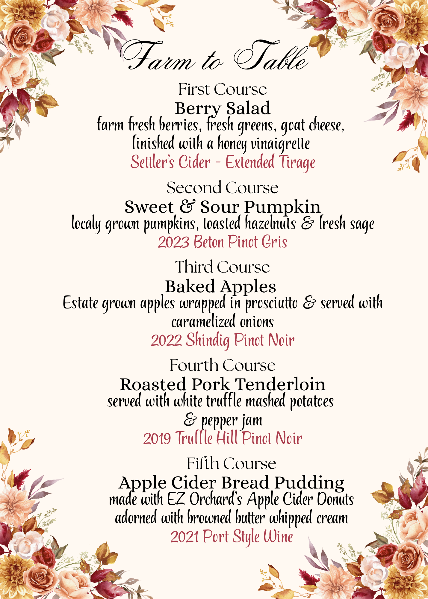 2023 White Pinot Noir - Pairs well with flaky white fish, roasted poultry and pork, savory breads, hard cheeses, spicy dishes and rich seafoods.